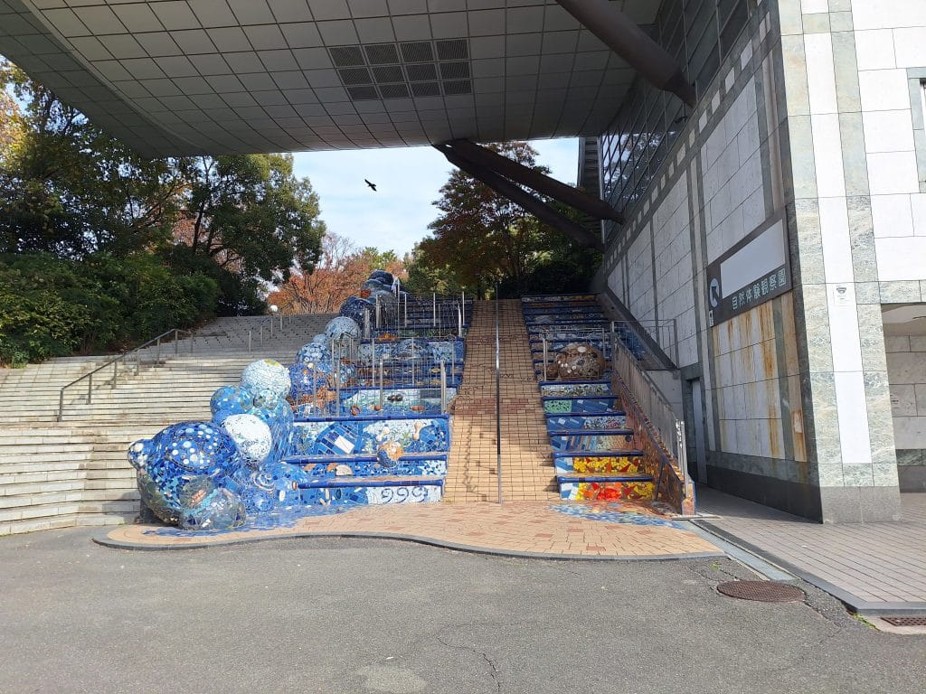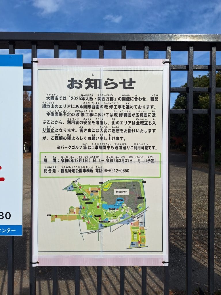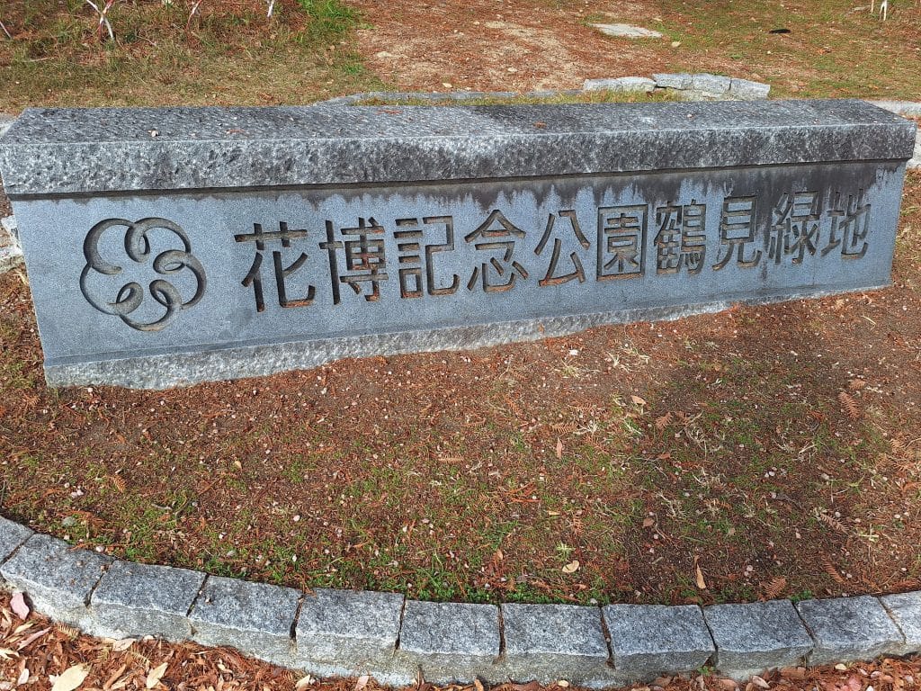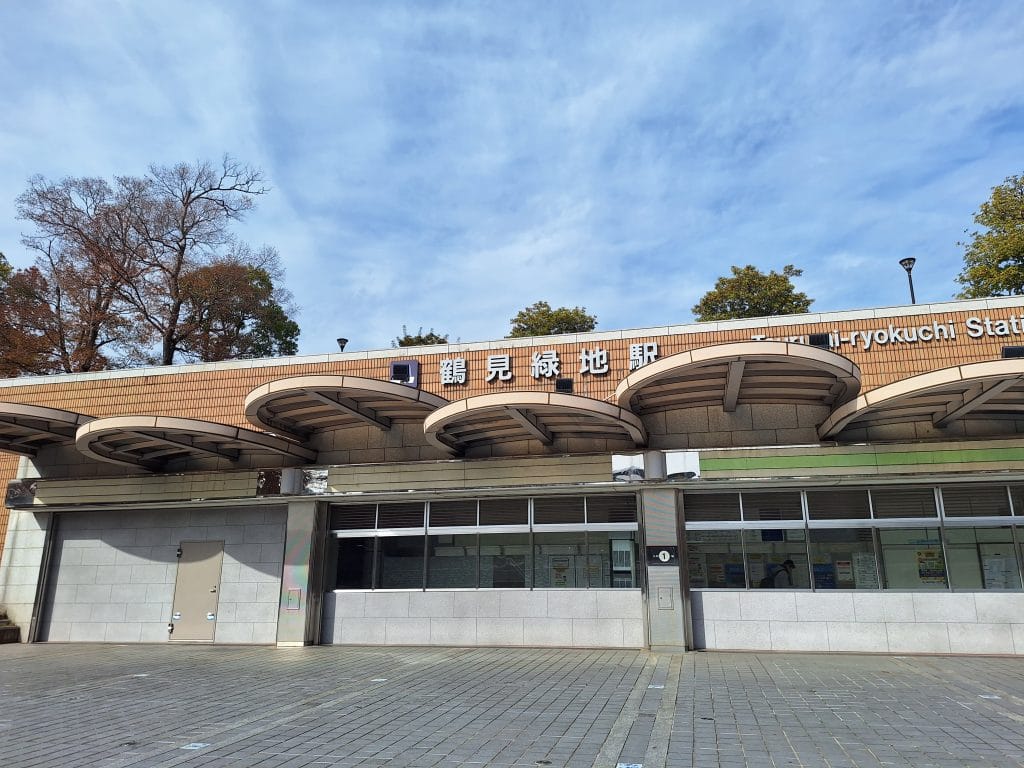 走到外面之後看見的鶴見綠地站