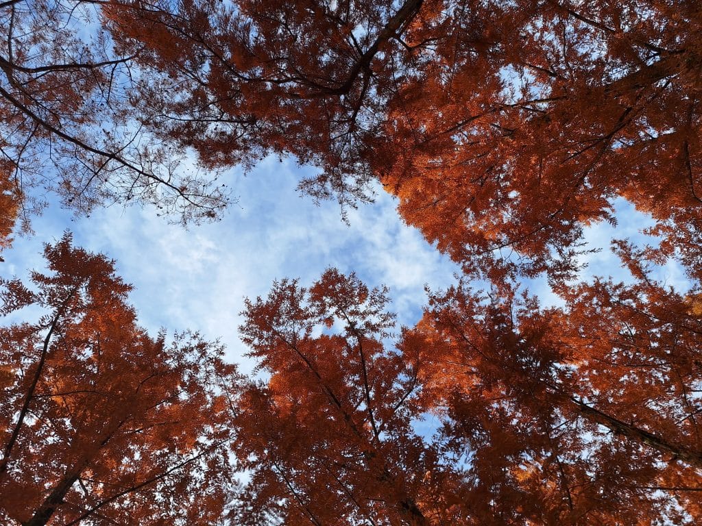 回頭看是連綿的落羽松