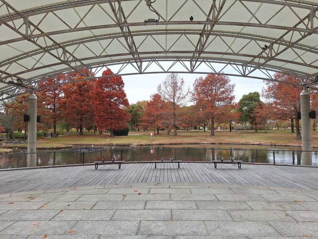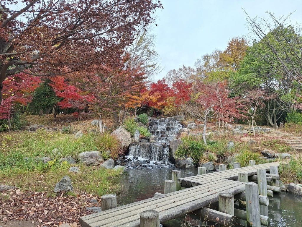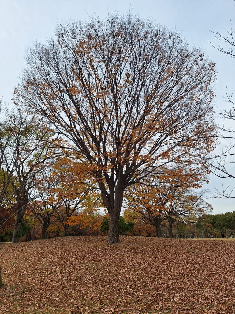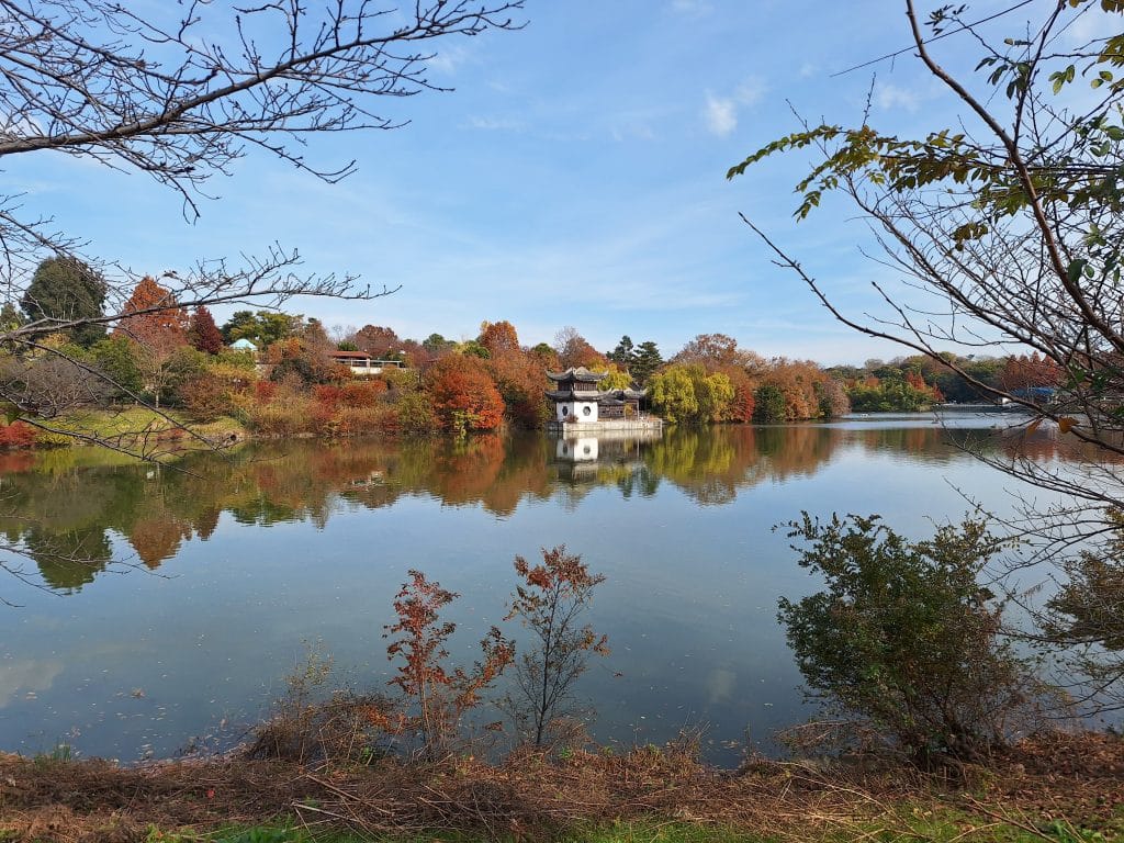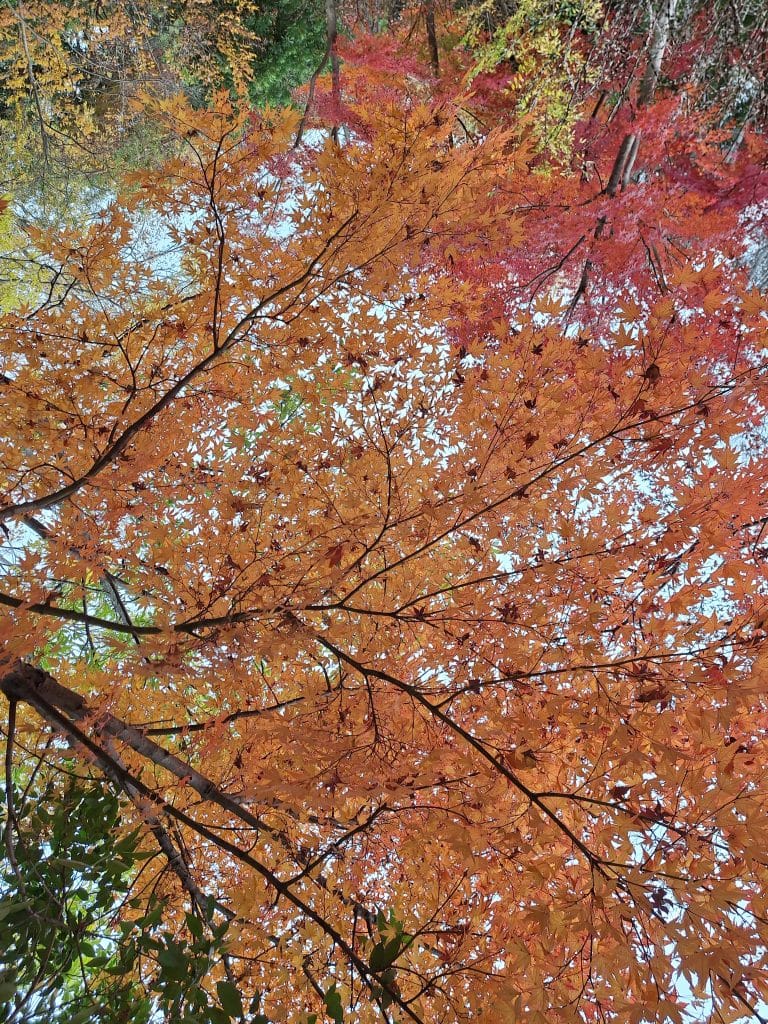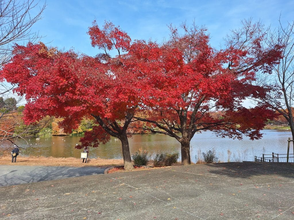 走到大池這邊後可以看到幾棵楓樹