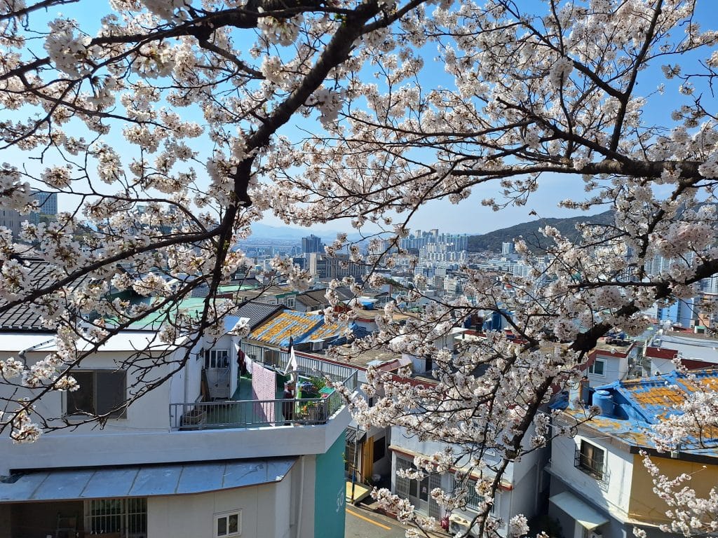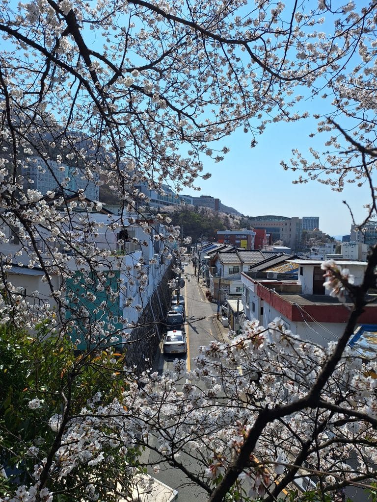 釜山|南川洞櫻花路——建築間粉光白影