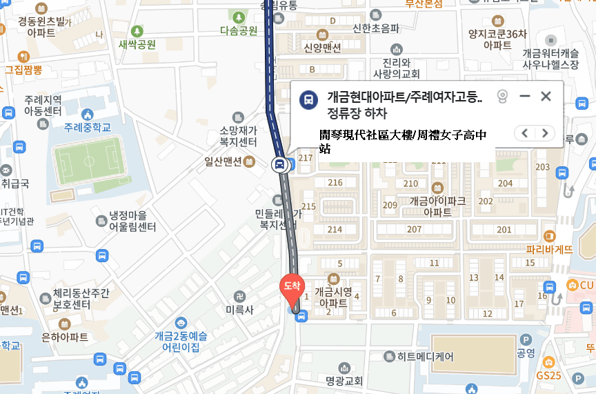 坐到開琴現代社區大樓/周禮女子高中站下車