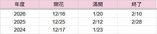 大概在二月初開到六成(差不多這時就很漂亮了)